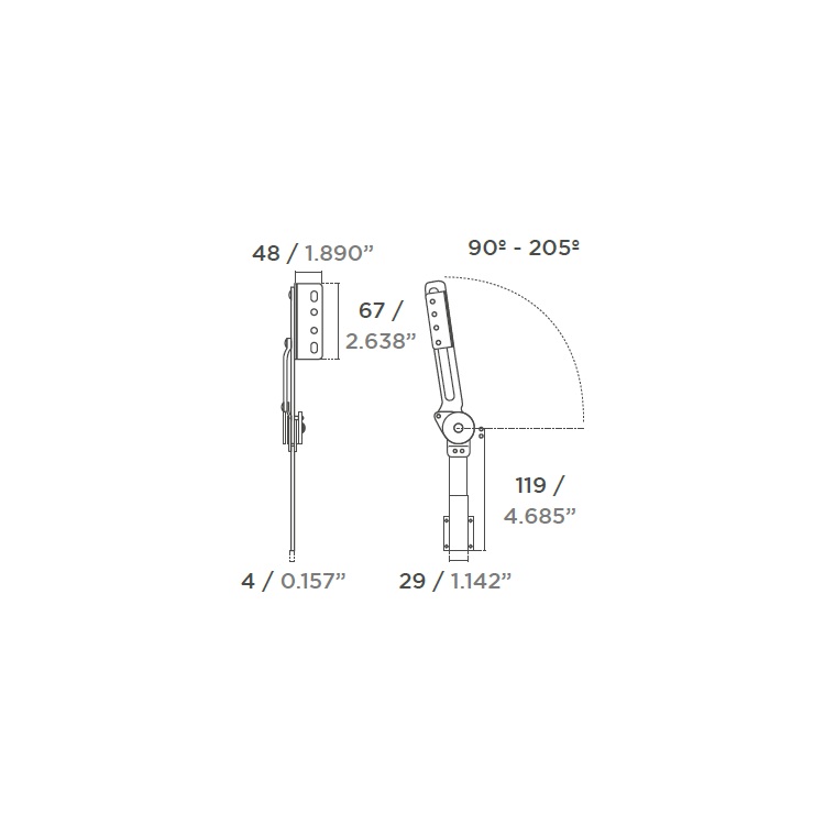 Inicio / Accesorios y cabeceras / Bisagra Posiciones con Retorno y Elevación (Par) (90-205º) 9P + Soporte
