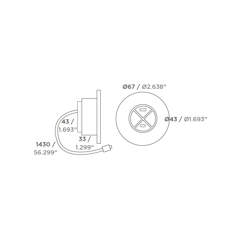 Botonera Empotrada Redonda + USB + USB Tipo C