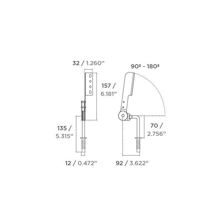 Cabecera Cromada / Dorado con Posiciones Angulo 90º-180º (6P) (Pareja) + Seta