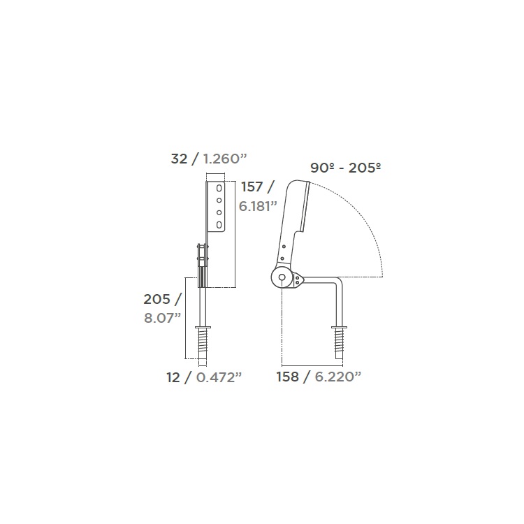 Cabecera Cromada / Dorado Palo Largo con Posiciones Angulo 90º-205º (9P) (Pareja)+ Seta