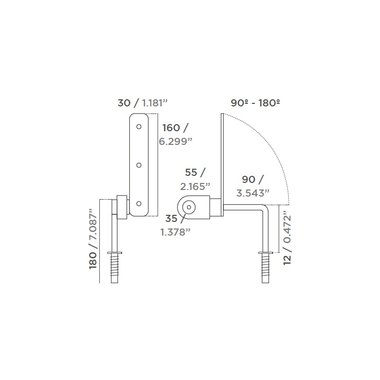 Cabecera Cromada / Negro Mate con Posiciones Angulo 90º-180º (46P) (Pareja) + Seta