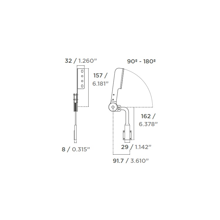 Cabecera Cromada Plana con Posiciones Angulo 90º-180º (6P) (Pareja) + Soporte
