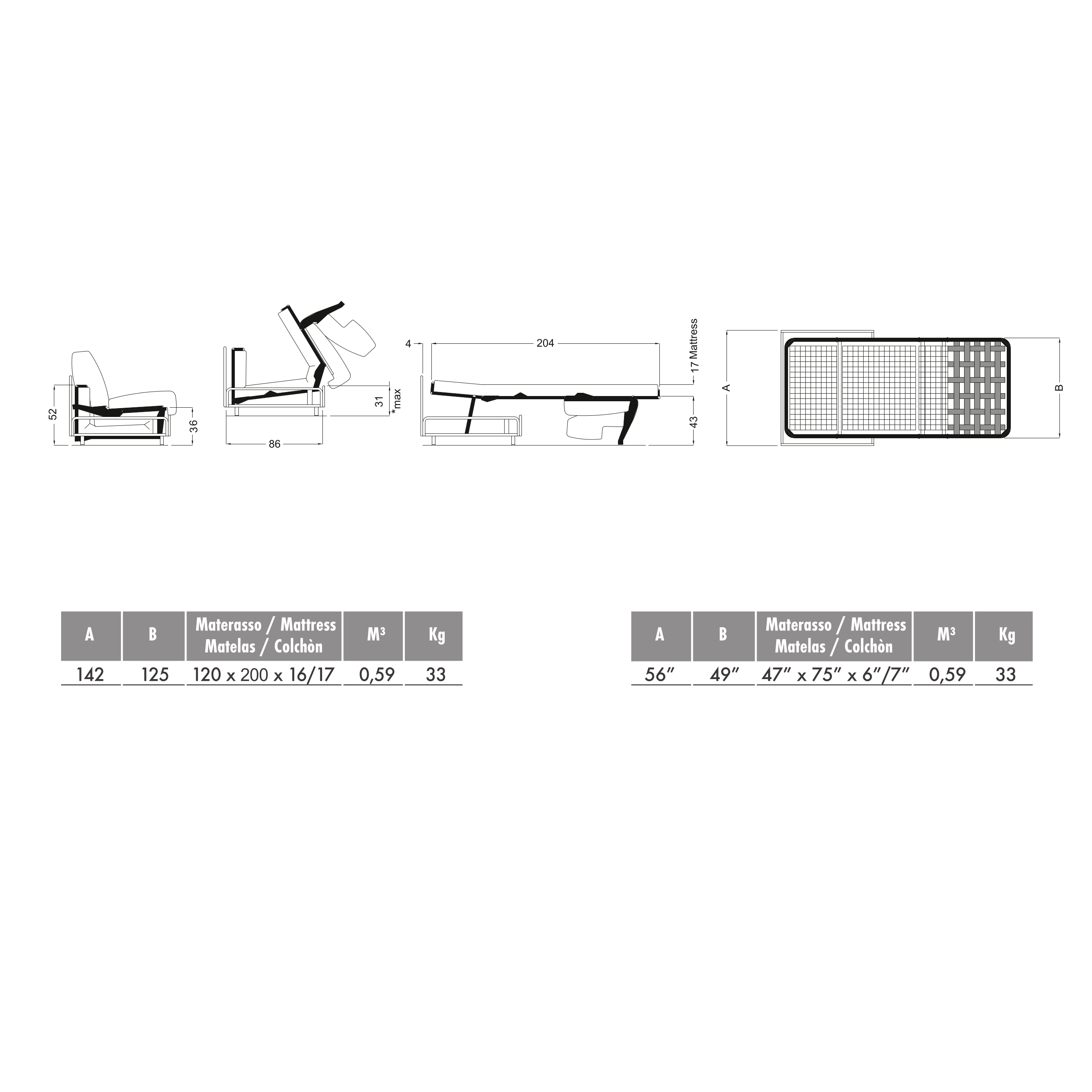 06002306 7 unidades 1.42 metros 0.86 metros 0.52 metros 42.14 kg