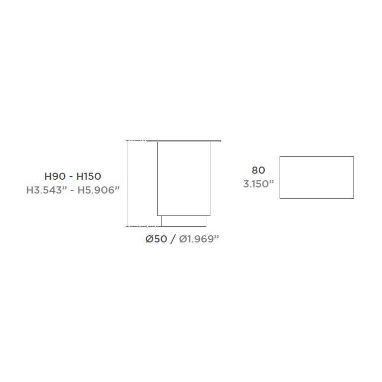 Inicio / Patas metálicas / Pata Coliseo (Ø50xH90/H150x1.0) Negro
