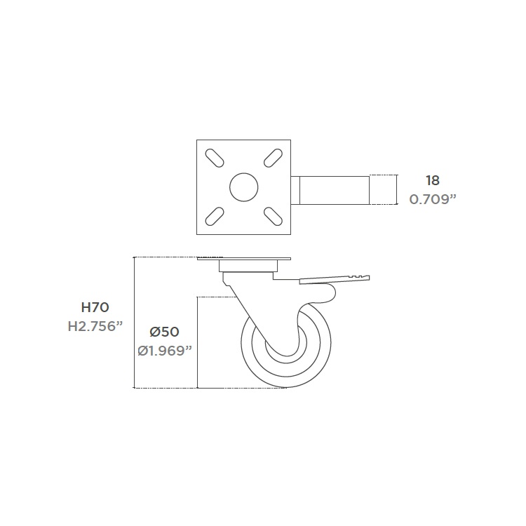 Inicio / Patas metálicas / Pata Rueda 360º Ø50x18xH70 Cromo con Freno