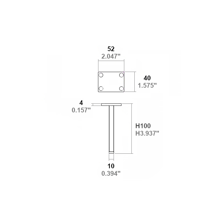 Inicio / Patas metálicas / Pata Sky Negro Mate (40xH100x1.0) Placa (40x52x4) 4 agujeros Ø5