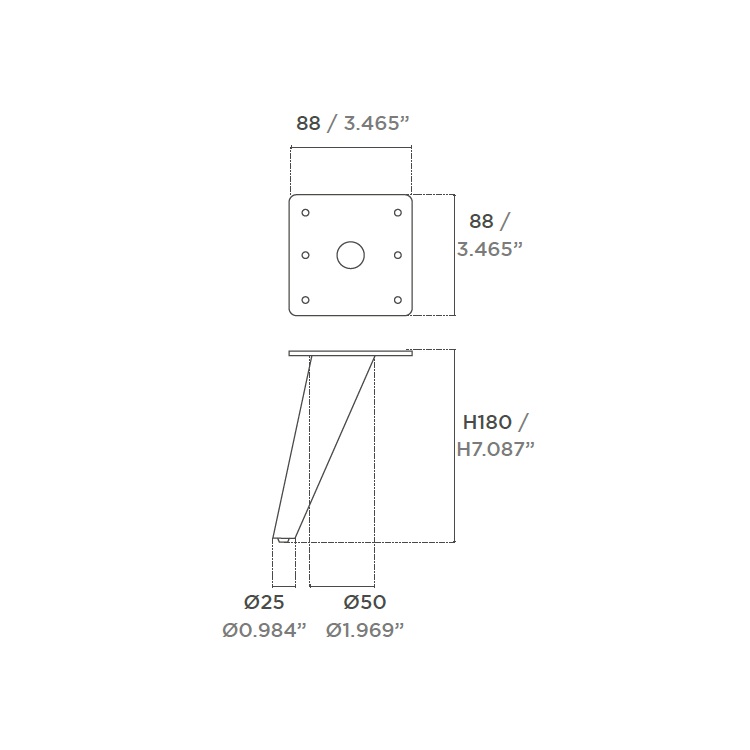 Inicio / Patas metálicas / Pata Yemen (25x50xH180x2.0) Negro Brillo