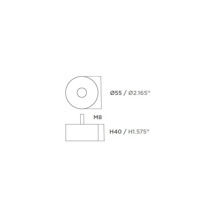 (x100) Pata EcoGreen Redonda Ø55xH40 mm.Con Pestaña Wengue con Espárrago M8