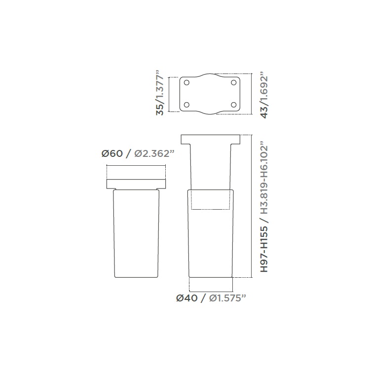 (x100) Pata EcoGreen Regulable Redonda Ø45xH97/H155 mm. Wengue